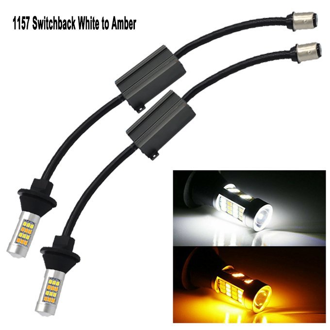 1157 3157 7443 42-SMD 2835-LED White/Amber Switchback LED Bulbs For Turn Signal Lights Canbus W/ 50W Resistor