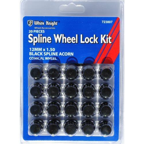 White Knight Wheel Kit 12mm x 1.50 Black Spline Lug Nut Kit