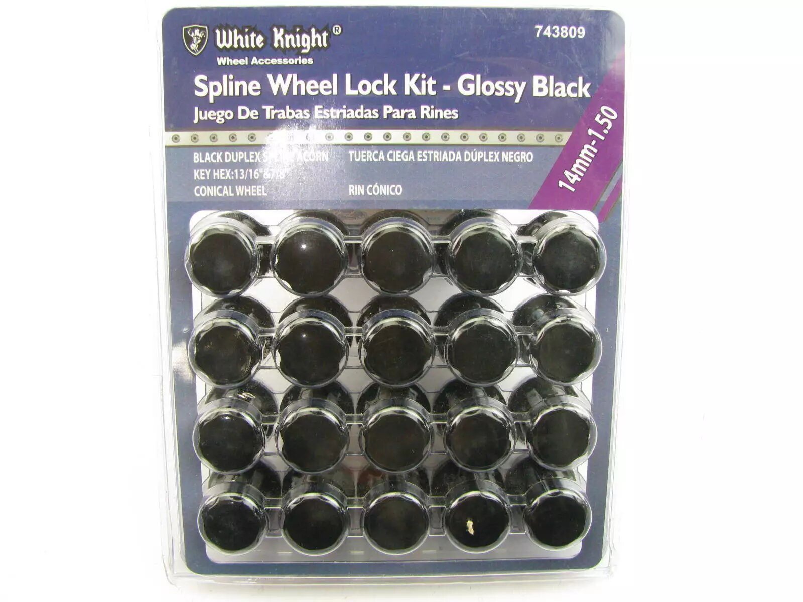 White Knight 743809 Wheel Lock Set Kit – 14mm-1.50 Black Duplex Spline Acorn